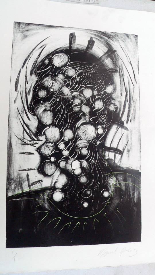 ESTA ES UNA TÉCNICA DIRECTA, DONDE EL ATACADO DE LA PLACA SE HACE CON HERRAMIENTAS DIVERSAS, COMO: Punta de metal, para trabajar la linea, Ruletas, Lijas, CUALQUIER HERRAMIENTA QUE PRODUZCA UNA HERIDA A LA PLACA. THIS IS A DIRECT TECHNIQUE, WHERE THE ATTACKING OF THE PLATE IS DONE WITH DIFFERENT TOOLS, SUCH AS: Metal tip, to work the line, Roulettes, Sandpaper, ANY TOOL THAT CAUSES AN INJURY TO THE PLATE.