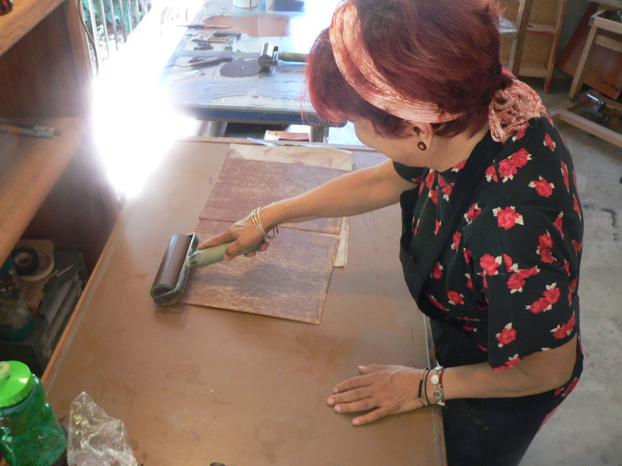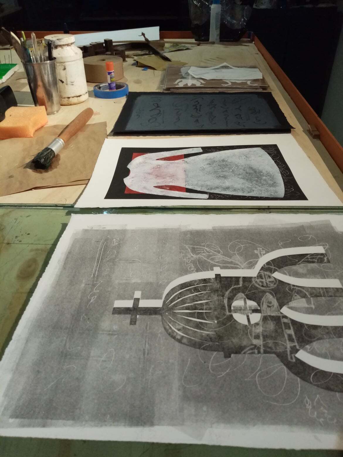 TÉCNICA ADITIVA EN DONDE SE LE VAN AGREGANDO ELEMENTOS QUE PRODUCEN EN LA PLACA TEXTURAS, PERMITIENDO CREAR UNA PIEZA EN ALTO RELIEVE. ADDITIVE TECHNIQUE WHERE ELEMENTS ARE ADDED THAT PRODUCE TEXTURES ON THE PLATE, ALLOWING THE CREATION OF A PIECE IN HIGH RELIEF.